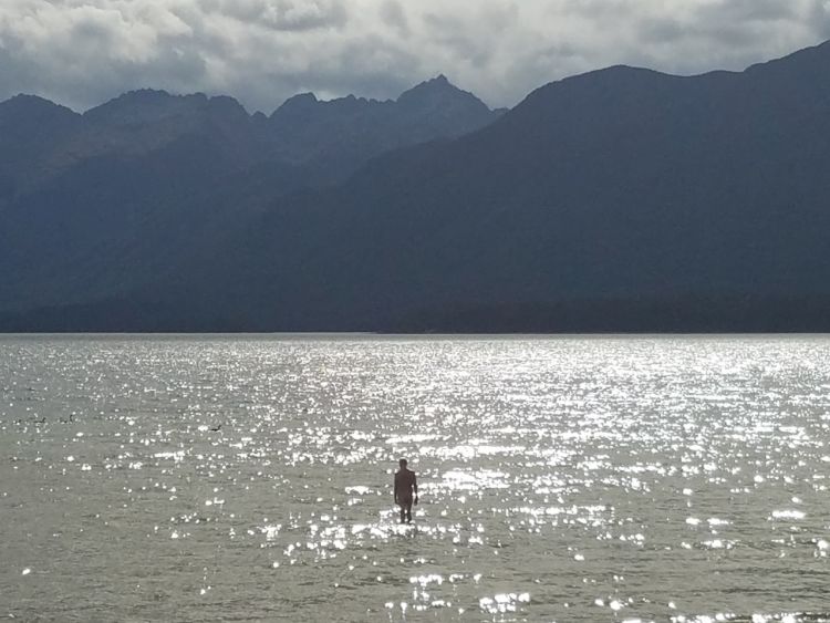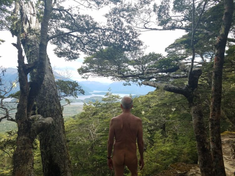 Am dritten Tag hatten wir eine persönliche Vereinbarung nur für uns mit einem Wassertaxi getroffen, um uns über einen Fluss zu einer schönen Rundwanderung und einem hohen Aussichtspunkt zu bringen. Unsere Vereinbarung gab uns einen Vorsprung von einer Stunde gegenüber anderen, die gemäß dem regulären Fährplan ankamen, so dass wir im Wesentlichen die gesamte Strecke nackt absolvieren konnten. Spät am Tag gelang uns ein nacktes Bad im nahegelegenen Lake Manapouri. Und da es spät am Tag war, gingen wir nackt zurück zum Auto entlang eines Teils des berühmten Kepler Track (einer von Neuseelands "Great Walks") und trafen dabei nur noch auf sehr wenige Wanderer.