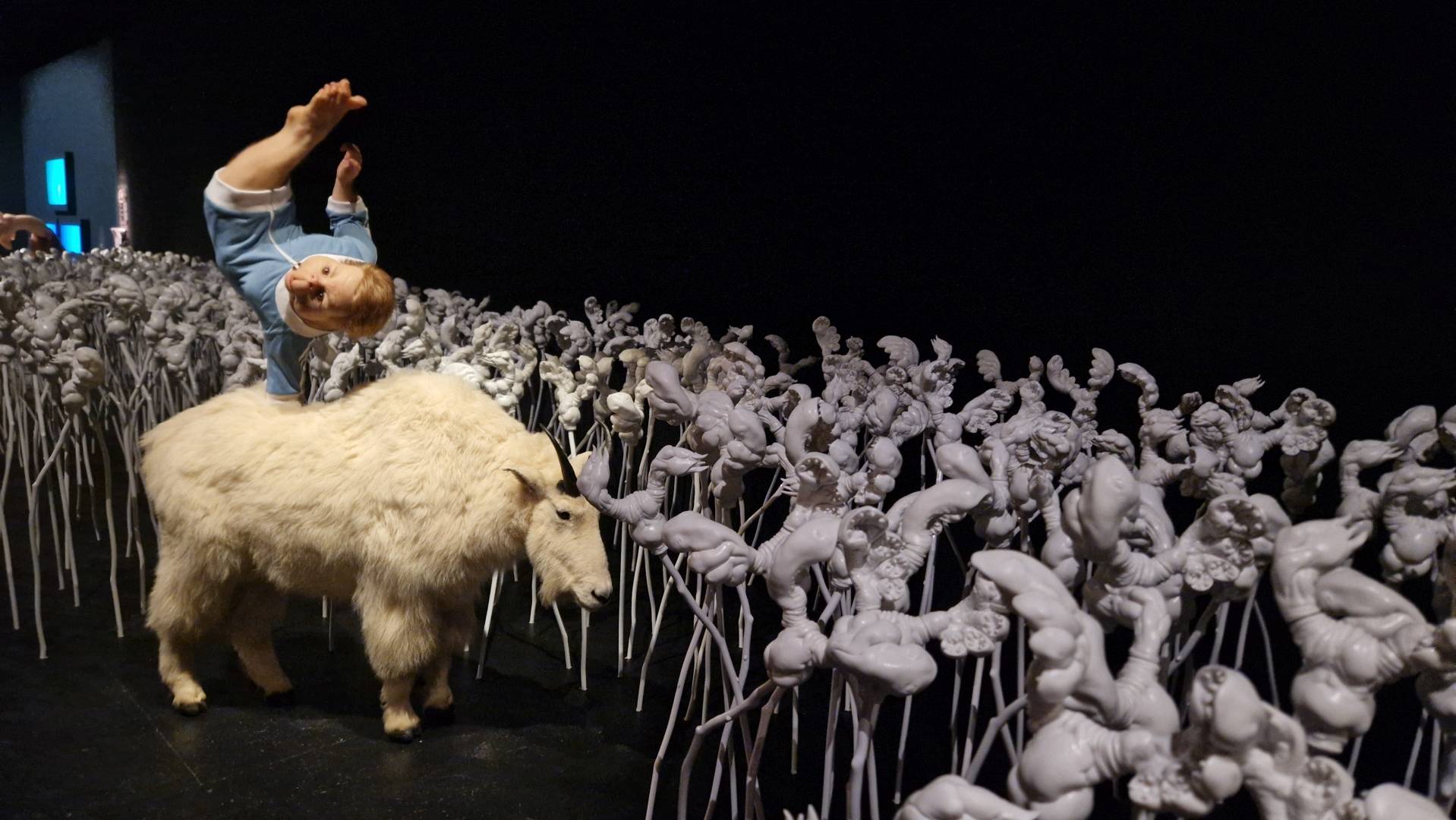 Die Künstlerin füllt einen dunklen Raum mit metamorphen, vollständig weißgrauer Blumen – mit echten und erfundenen Körperteilen verschiedener Arten als Blütenblätter auf Stängeln. Dazwischen ein Zelt, in dem ein Liebespaar liegt. Zuerst wirkt es wie gewohnt, bis die Krallen an den Fingern und Zehen auffallen. Die Blumen wirken fremd, vielleicht sogar befremdlich. Dazwischen sind seltsame, teils irgendwie menschlich, teils fremdartig und rätselhaft wirkende Wesen zu finden. Dennoch spürt und erlebt der Betrachter eine ruhige, freundliche Atmosphäre.