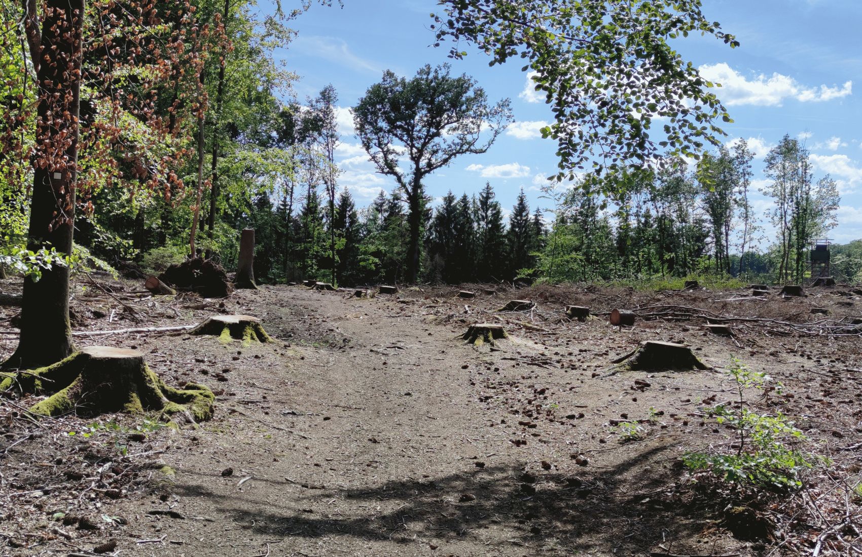 Die »verlorene Zeit des deutschen Waldes« musste man nicht lange suchen: Mehrfach taten sich weite Flächen auf, die durch Baumstümpfe und herumliegendes Astwerk von der ehemaligen Fichten-Monokultur zeugten, die den Forstwirten einige Jahrzehnte lang wegen des schnellen, geraden Holzwachstums schnelle Gewinne brachten, inzwischen aber aufgrund der durch Trockenheit und Erwärmung geförderten Ausbreitung des Borkenkäfers (meist von der Art des Buchdruckers) vielerorts den Kollaps der Holzwirtschaft bewirkt hat. Einige der betroffenen Forstwirte haben zugelernt und machen sich an die Wiederanpflanzung eines widerstandsfähigen Mischwalds, wie er für Wälder in Deutschland traditionell und typisch war. Sie folgen damit etwa dem Vorbild des