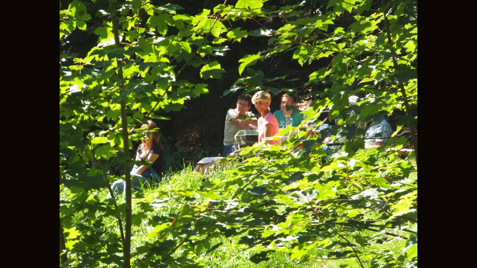 Im Anschluss an die Nacktwanderung erfrischte und stärkte man sich noch in der lokalen Gastronomie mit erfrischenden Getränken und köstlichem Apfelkuchen, bevor die meisten Teilnehmer den Wanderort der Pfingstsonntags-Wanderung ansteuerten.