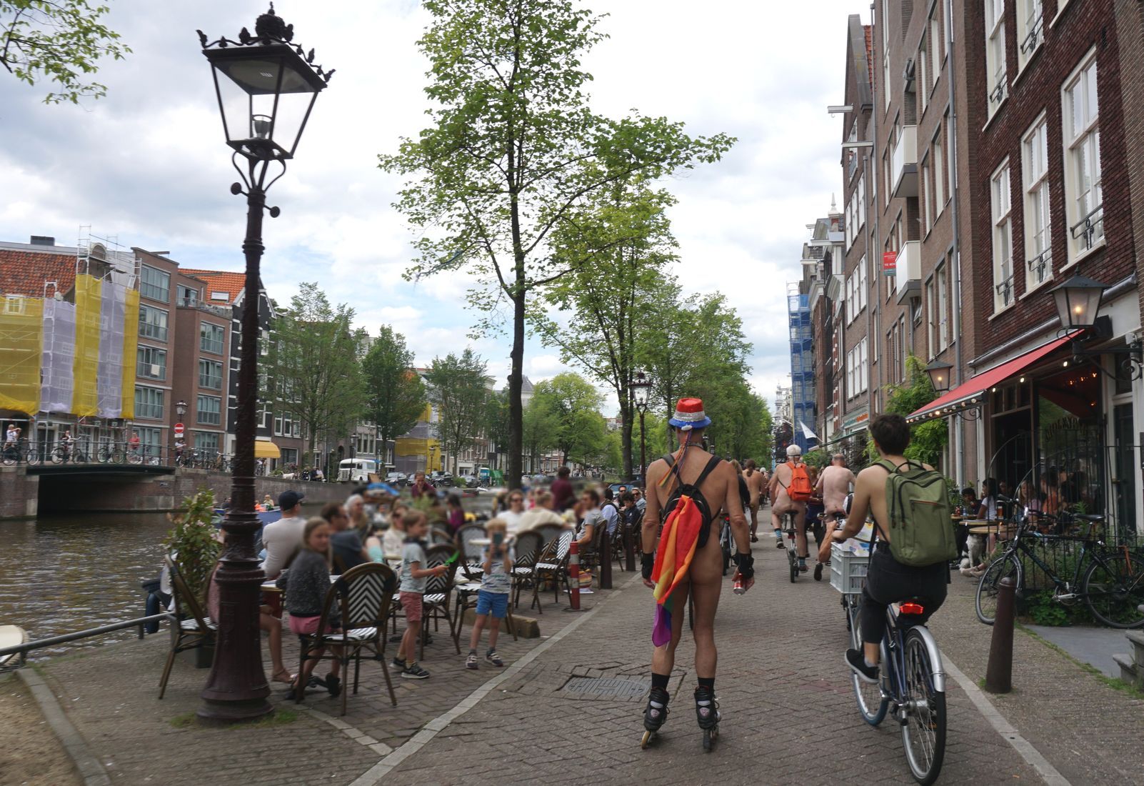 Die Initiatoren hatten als Aufpasser und Verkehrsregler diesmal die Polizei gebeten, die Demo zu begleiten, nachdem 2019 der WNBR Amsterdam ausfallen musste, weil der zertifizierte Guide erkrankt war - denn mindestens einer der begleitenden Verkehrshelfer muss entsprechend ausgebildet und zertifiziert sein.