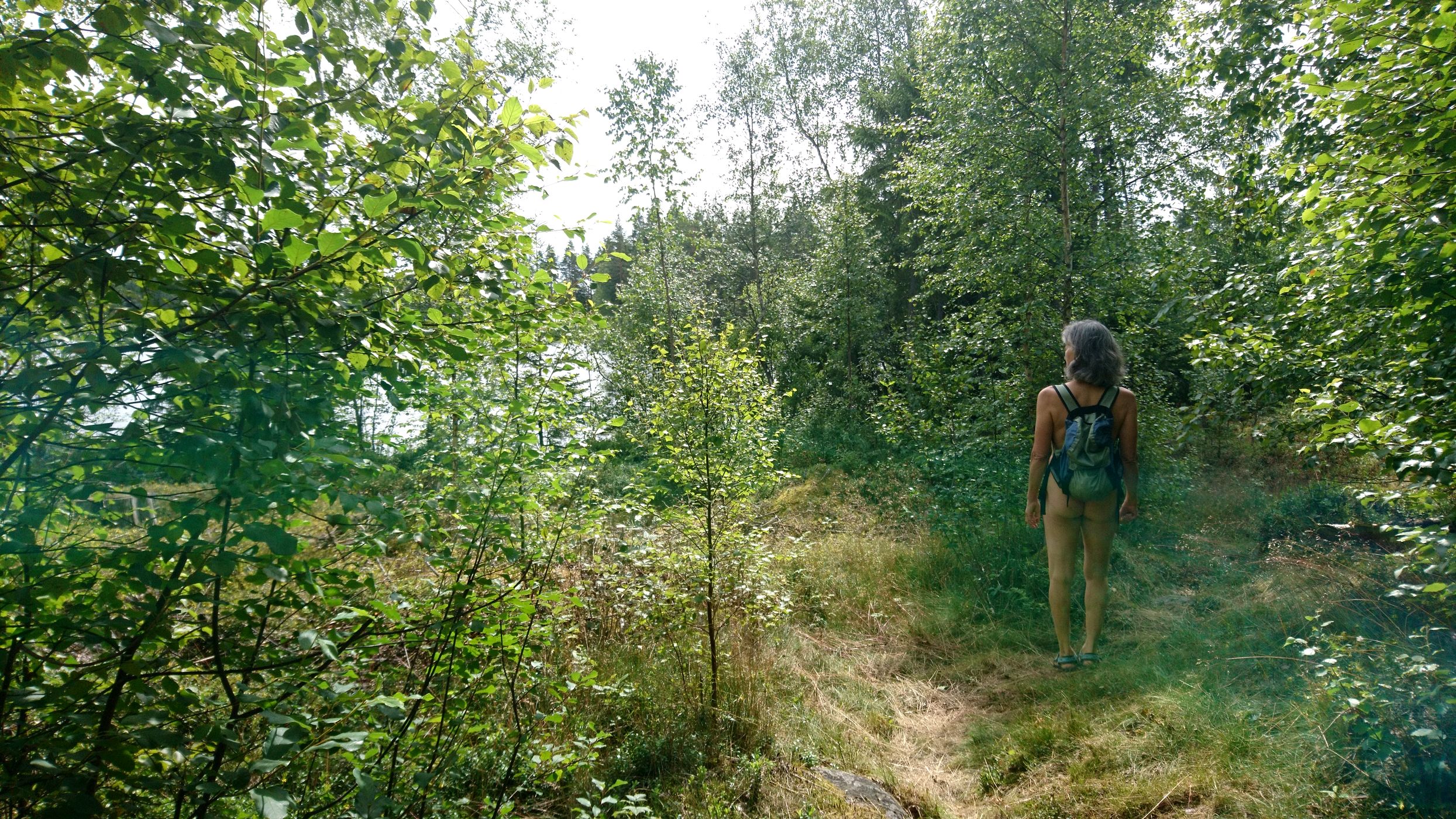 Hatten wir in den vergangenen Wochen auf unserer Tour durch Skandinavien immer wieder sehr einsame Landschaften durchwandert mit wunderbaren Badestellen (die wir auch fast alle nutzten). Was das textilfreie Wandern betraf, so verlockten zwar die Einsamkeit und Temperaturen, aber das 'Stechviehzeug' bestimmte sehr überzeugend die Kleiderordnung!