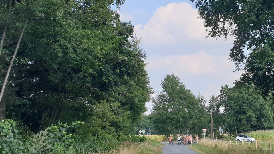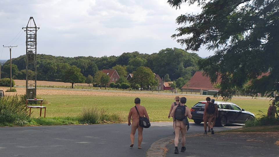 Am 19. August erkundeten wir nackt wandernd und radelnd die Davert, Bauerschaften, Wald, eine Promenade im Bau am Dortmund-Ems-Kanal und das Venner Moor zwischen Ottmarsbocholt und Senden.