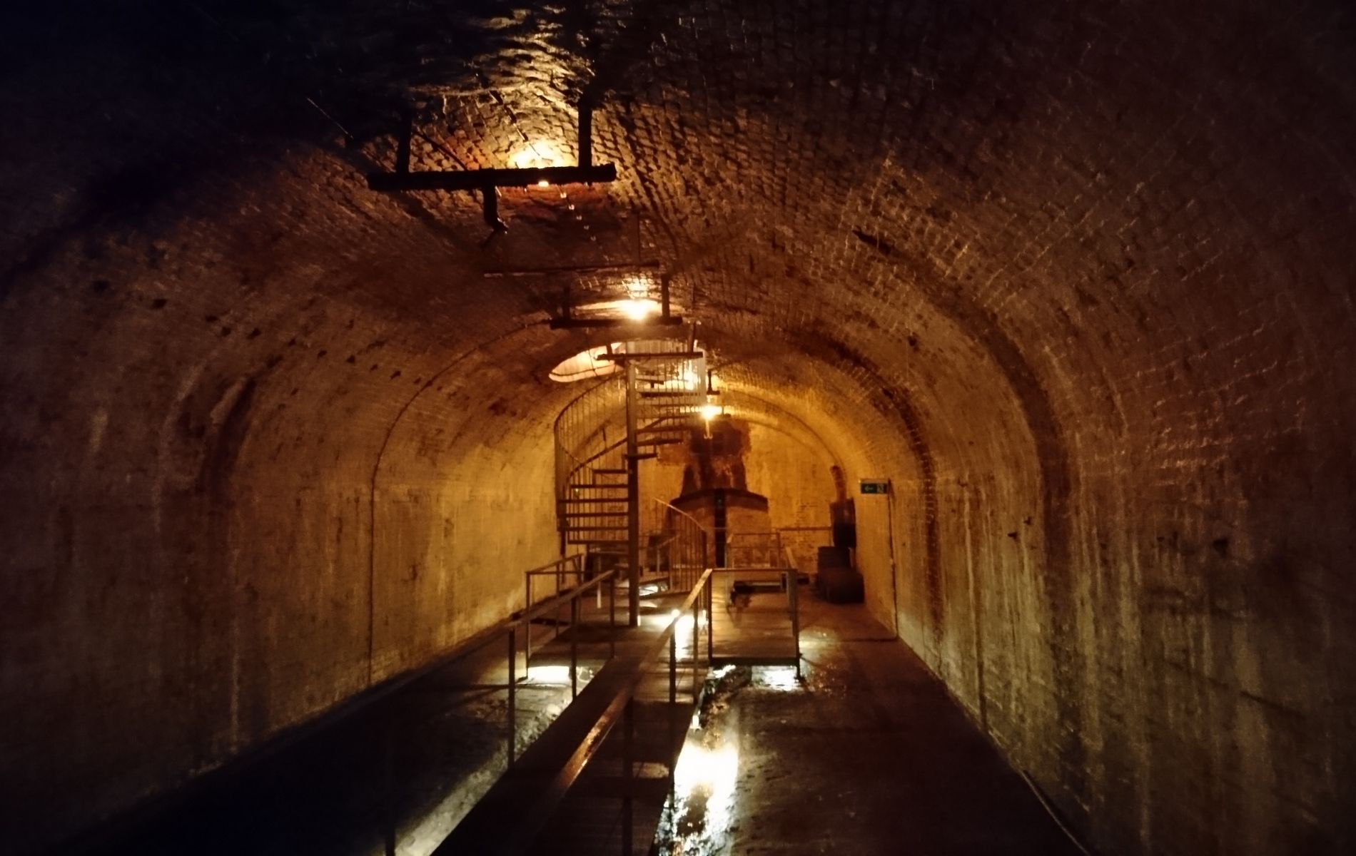 Wir begannen unsere Führung und lernten viel über historische Produktionsmethoden. Anfangs war es noch 15°C warm, weiter unten sank die Temperatur auf 10°C. Wer wollte, ging auch barfuß durch die Pfützen. Der untere Bereich ist ein Refugium für die Überwinterung verschiedener Fledermaus-Arten und daher vom 1. Oktober bis 1. Mai komplett abgeriegelt, um die Tiere nicht zu stören.