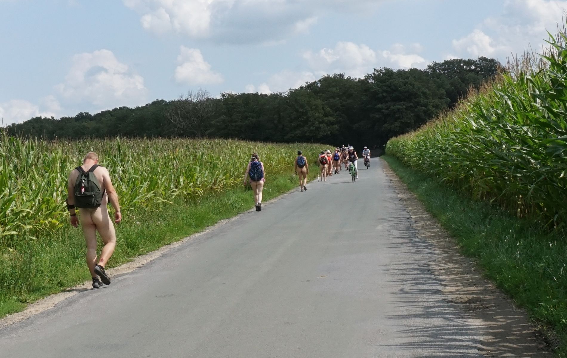 Der Sonntag hatte mit 52 Anmeldungen die höchsten Meldezahlen allzeit bei den WNT, davon gingen 30 wandern, unter ihnen gleich zwei Frauen, die heute ihren ersten Nacktwandertag überhaupt hatten. Der Wandertag teilte sich in zwei 10 km-Wanderungen, so dass für Senioren und andere Menschen mit geringerer Kondition oder vollem Terminkalender die Möglichkeit bestand, die Nachmittagsrunde zu schwänzen.