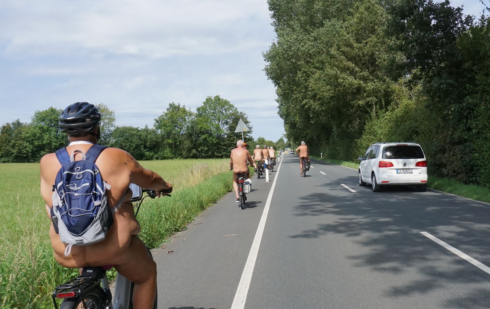 Sonntag 20.8.2023, zweiter Tag der diesjährigen WNT: Die Sonne scheint, die Stimmung ist gut, und es sind 52 Teilnehmer angereist - davon 8 Frauen. Super, so viele waren wir noch nie! Mehrere von ihnen sind Neulinge. Drei von ihnen erzählen später, dass sie eigentlich erstmal bekleidet mitwandern wollten, um mal zu schauen. Weil sie sich aber sofort wohlgefühlt haben, hätten sie sich spontan entschieden, von Anfang an nackt mitzugehen. Nächstes Jahr wollen sie wieder mitwandern.