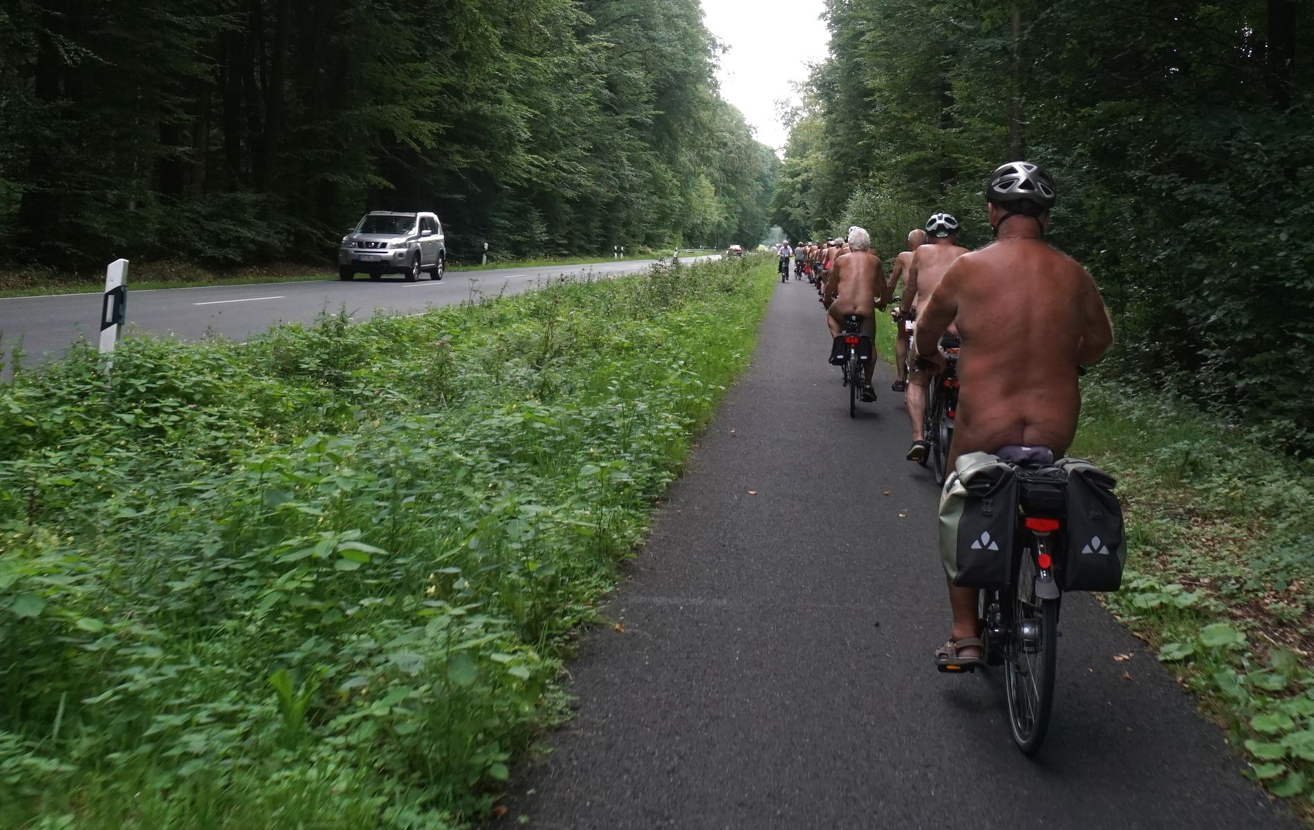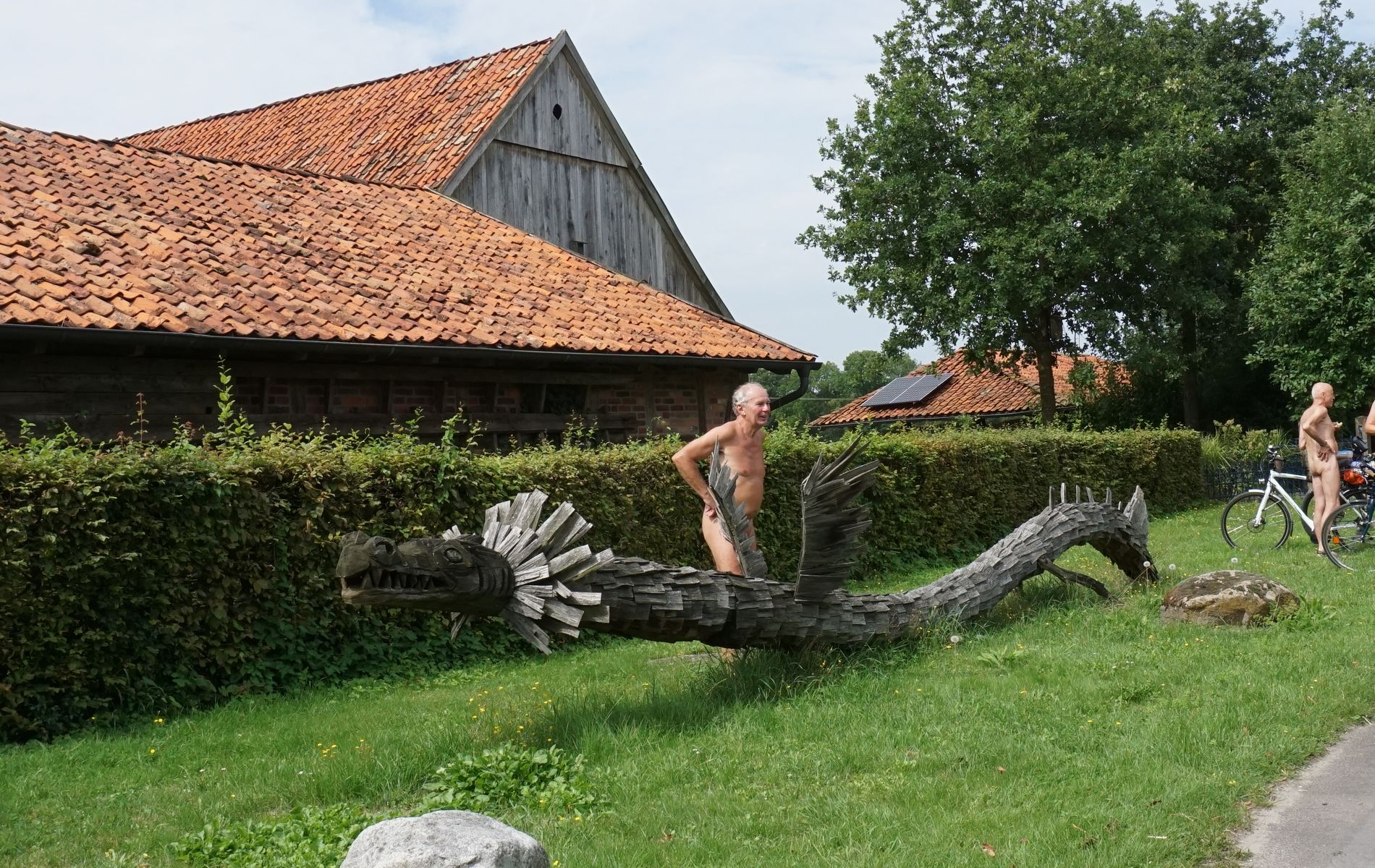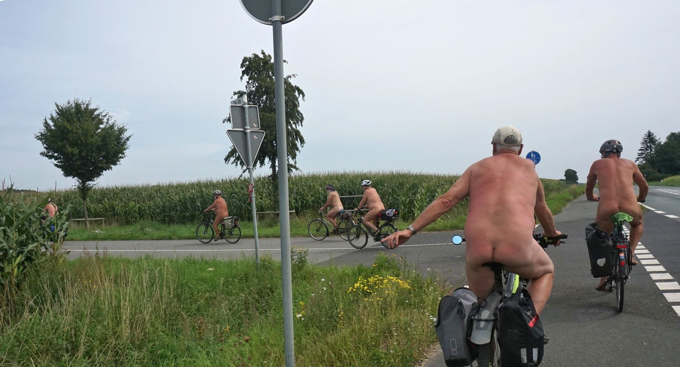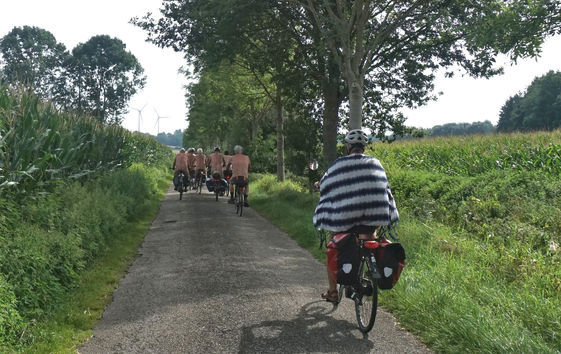 Zwischen Nordwalde und Emsdetten führte die Radelroute über rund 50 km, auf die sich achtzehn Naturisten freuten. Nur zeitweise durch Wolken gefilterter Sonnenschein und Temperaturen zwischen 23 und 26 Grad förderten das Wohlbefinden durch beständigen Fahrtwind, aber auch die Notwendigkeit einer Beschichtung mit Sonnenschutz.