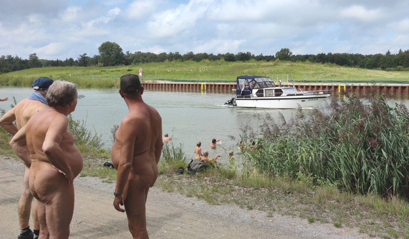 Knapp zwei Kilometer ging es am Dortmund-Ems-Kanal entlang. Hier war die Mittagsrast eingeplant, die natürlich auch zum Schwimmen genutzt wurde.